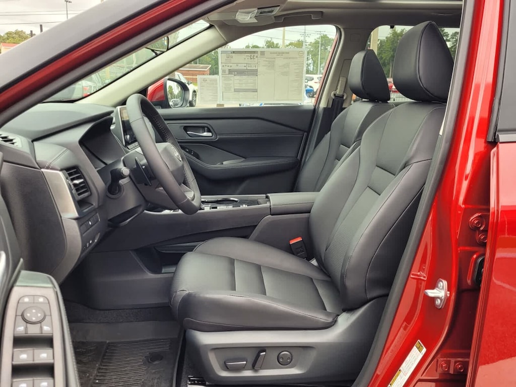 SV PREMIUM PACKAGE Rear Door Sunshades, Silver Painted Roof Rails, Leatherette Door Trim Inserts w/Stitch, Panoramic Moonroof, Rear Personal Lights, Replaces central room light, COLD WEATHER PACKAGE Heated Front Seats, Heated Steering Wheel. Nissan SV with Scarlet Ember Tintcoat exterior and Charcoal interior features a 3 Cylinder Engine with 201 HP at 5600 RPM*.